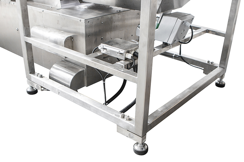 結(jié)構(gòu)、工作原理及使用特點:本機由烘箱、振動底座、自動上料機構(gòu)、抽濕裝置、冷卻裝置、連接風(fēng)管、蒸汽換熱器、風(fēng)機等組成。當(dāng)蒸汽進入換熱器后進行熱交換,產(chǎn)生高溫干燥熱空氣通過強力風(fēng)機的作用,由下而上進入烘箱,同時物料在自動吸料機構(gòu)的作業(yè)下自頂部進入烘箱,熱空氣與物料在烘箱內(nèi)進行逆流交換,物料在振動電機的作用下沿阿基米德螺旋線翻滾走動,并與熱風(fēng)充分接觸,從而達到干燥效果。烘箱上部連接吸濕裝置,及時排除烘焙時產(chǎn)生的濕氣。烘箱內(nèi)裝有網(wǎng)板,以滿足不同大小的物料烘干要求。全自動振動烘干設(shè)備最大特點是能源能充分利用、工作連續(xù)性好、物料干燥均勻、生產(chǎn)量大、操作方便、衛(wèi)生條件好、易清洗、易維護、適用范圍廣。整機均由全不銹鋼制作,符合GMP要求。本機適用于烘干帶濕潤水的物料,不適合烘干含有結(jié)合水的物料。